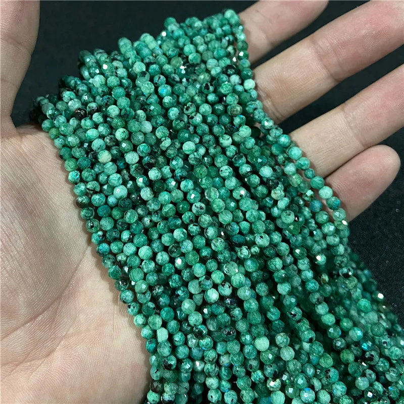 Бусины круглые с натуральным граненым зеленые самоцветы, размер 2 м...