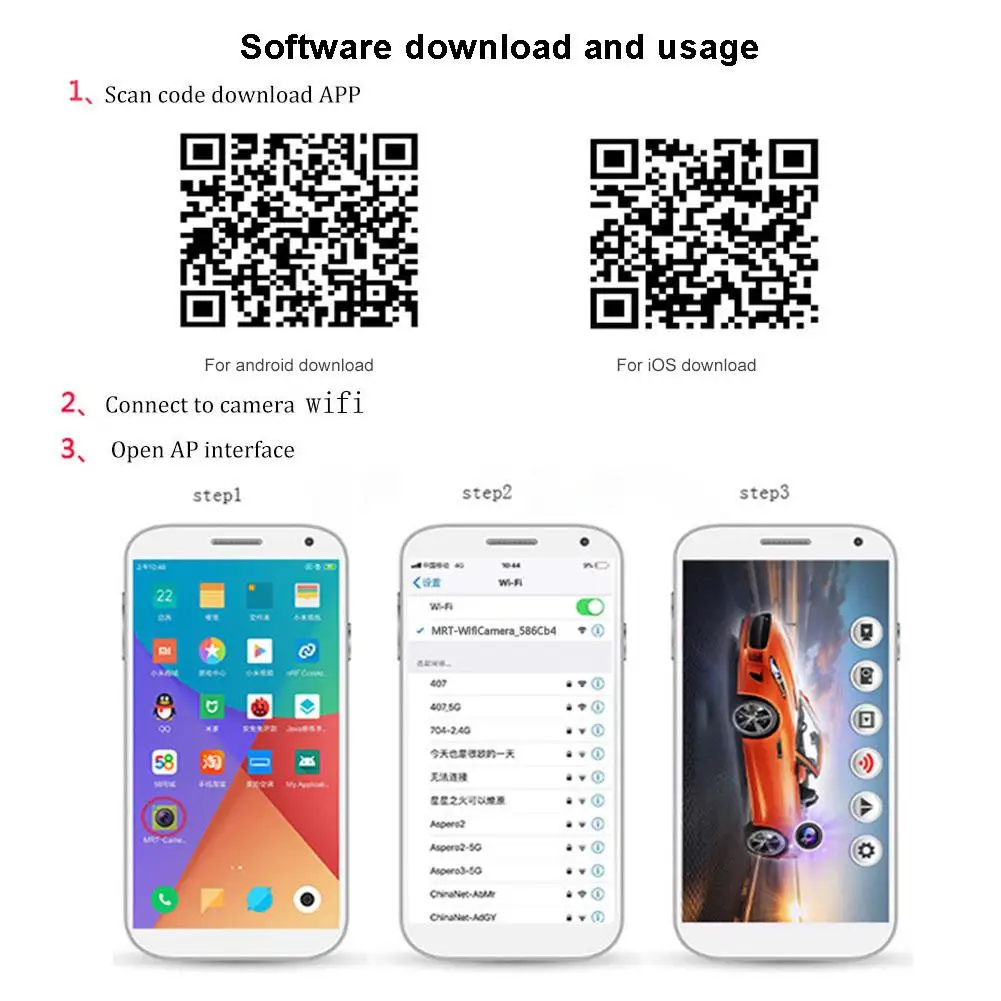 Автомобильная резервная камера поставляется с высокопроизводительным чипом обработки изображений, Полноразмерным углом обзора 170 °, регистратором вождения и функцией беспроводной передачи. Он будет отображать реальные изображения заднего хода высокой четкости.