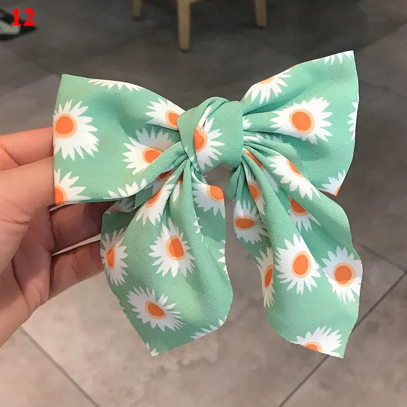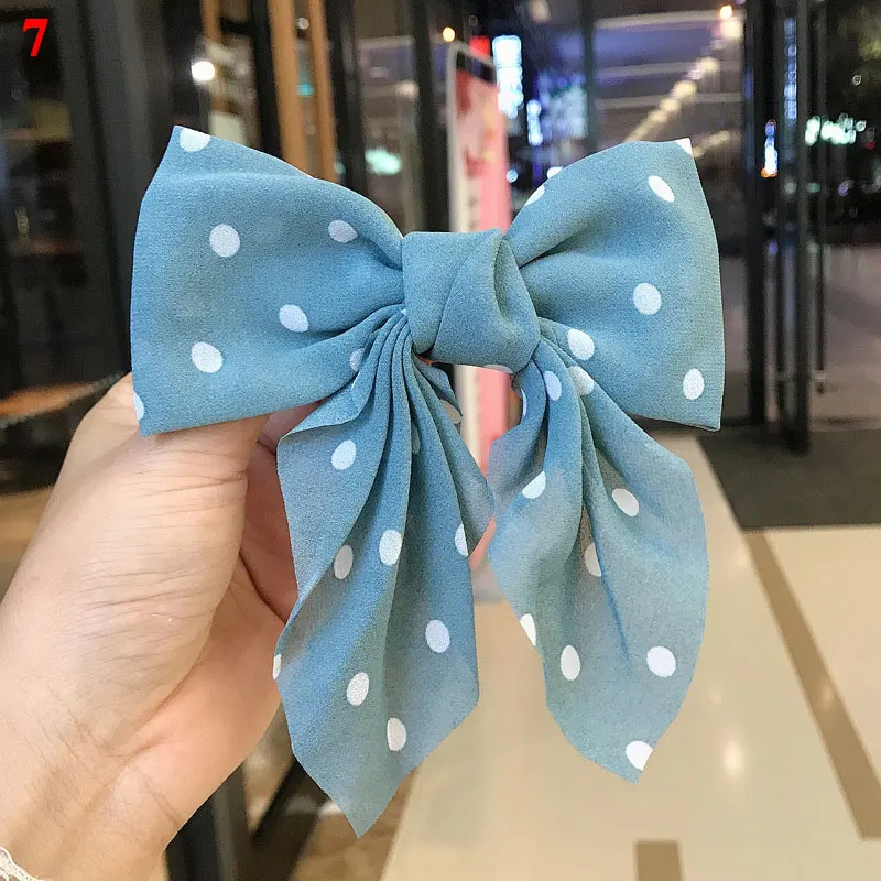 Заколки для волос в горошек с цветочным принтом для девочек, Шпилька для волос с бантом-маргариткой в пасторальном ретро стиле, Шпилька для волос с большим бантом, аксессуары для волос