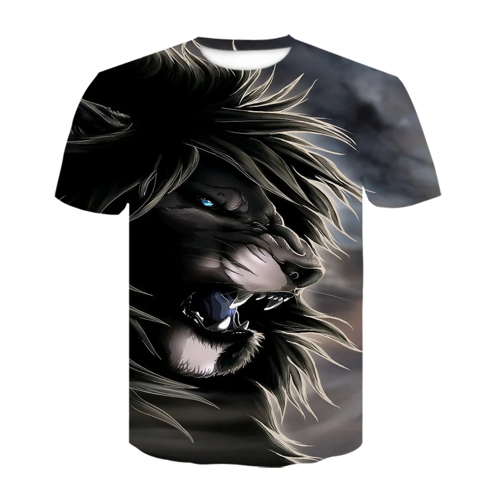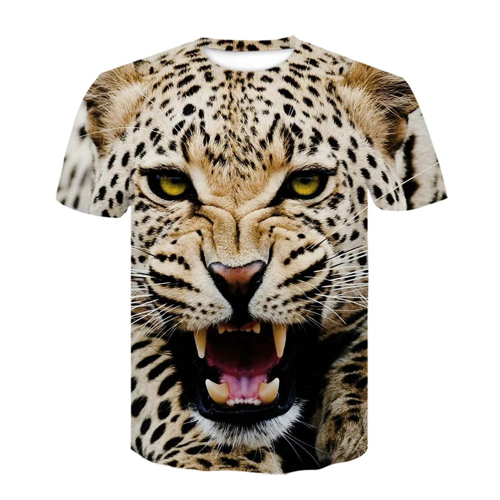 Белая футболка с животными, футболка с 3D принтом льва, модная Классическая футболка с коротким рукавом и круглым вырезом, свободная футболка большого размера