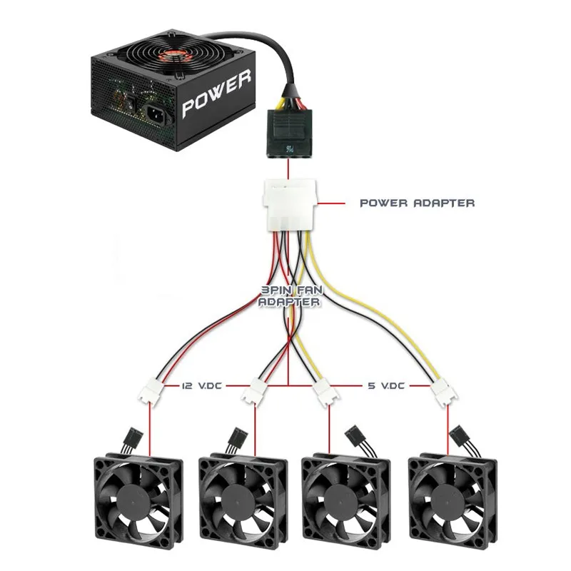 IDESATA Molex 4-контактный разъем для чехол Вентилятор охлаждения 3-контактный TX3 мульти-веером Мощность адаптер конвертер кабель wСкорость, 2x 5V2x12V