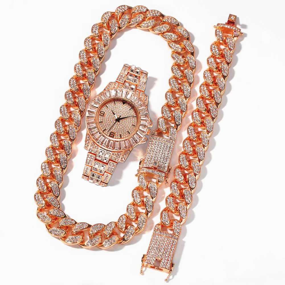 Кубинская цепь часы набор Цепочки и ожерелья Watch браслет в стил...