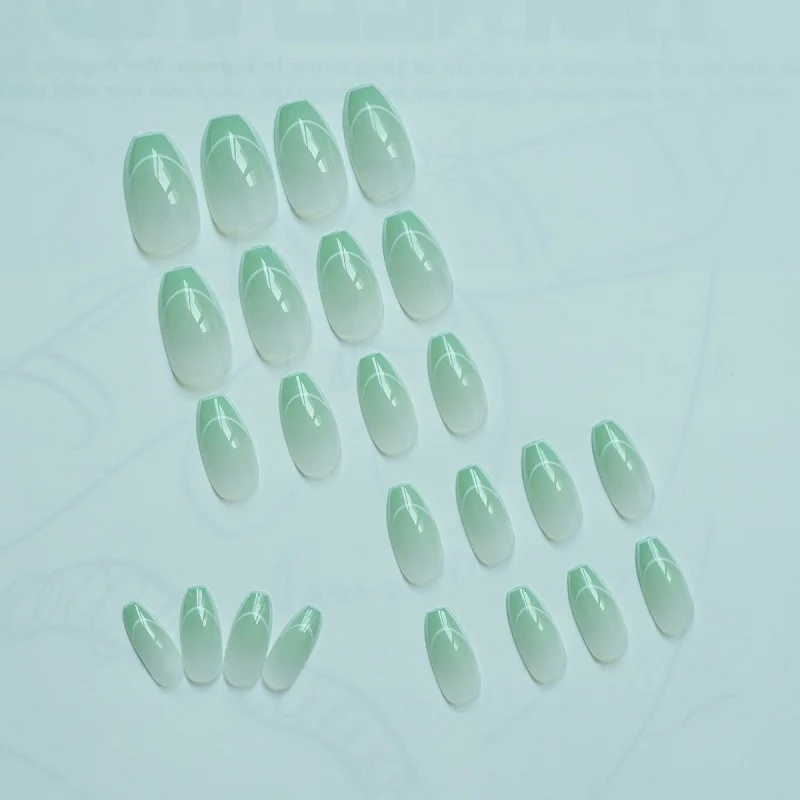 GAM-BELLE, зеленый градиент, натуральные накладные ногти, балерина, французский элегантный, накладные ногти, накладные ногти, удлиняющие кончики с клеем, инструмент для маникюраОсобенности:12 различных размеров для разных пальцев, 2 наконечника для каждого размера.Для профессионального наращивания ногтей и французского маникюра.Легко использовать с клеем для ногтей или желе двухсторонние клейкие ленты.Легко обрезать и прикрепить их к любой длине и форме, которые вам нравятся.Зеленые градиентные французские накладные ногтиМатериал: АБС-пластикСтиль: накладные ногти с полным покрытиемПакет включает в себя: 24 шт./компл. накладные ногти + 1 мл клей для ногтейСоветы по использованию:1. Вырезайте, напиливайте и формируйте собственные ногти.2. Очистите свой собственный ноготь.3. Выберите подходящий кончик, сравняя ширину вашего естественного ногтя.4. Приклейте наконечник на ногтевую пластину.5. Выровняйте и формируйте кончик.6. Начните применять УФ-гель или лак для ногтей.