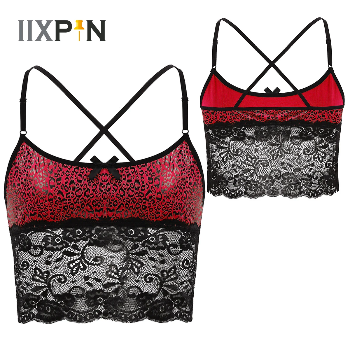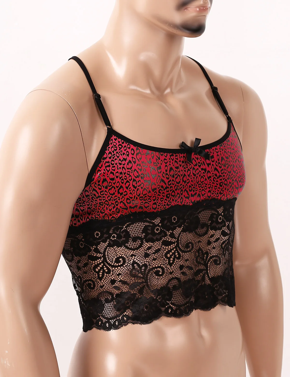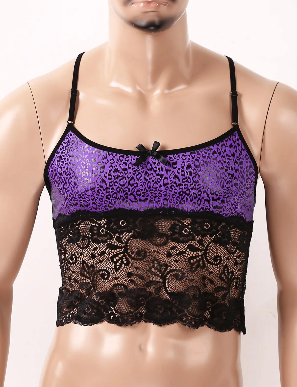 # M-XL мужской эротический Леопардовый регулируемый Топ на тонких бретелях с перекрестной спиной, кружевной жилет, укороченный топ, одежда для сна
