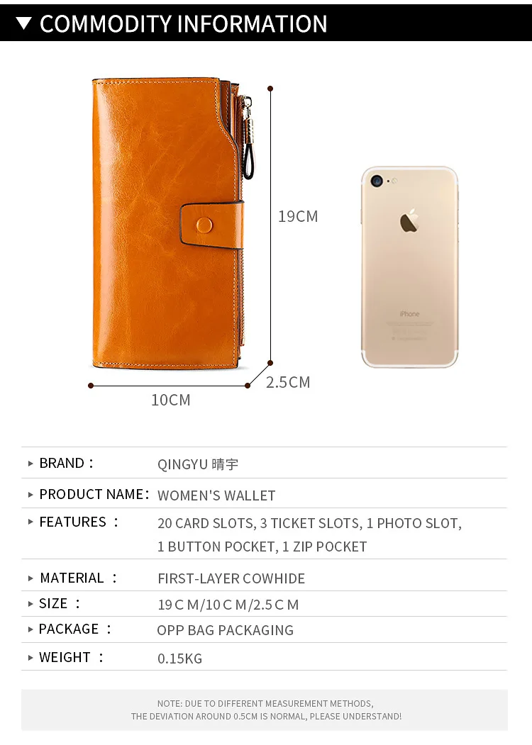 Женский Длинный кошелек из вощеной кожи, держатель для карт на молнии
