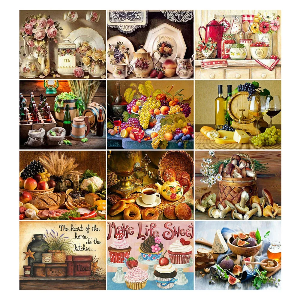 Алмазная картина LZAIQIZG, квадратнаякруглая, для кухни, хлеба, торта, фруктов, пейзажа, подарок ручной работы, алмазная вышивка, украшение для дома