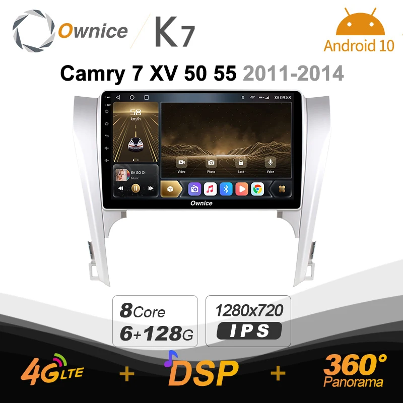 Автомагнитола Ownice K7 на Android 10,0 для Toyota Camry 7 XV 50 55 2011 - 2017 с поддержкой 4G LTE 360, 2DIN, 6 ГБ + 128 ГБ
