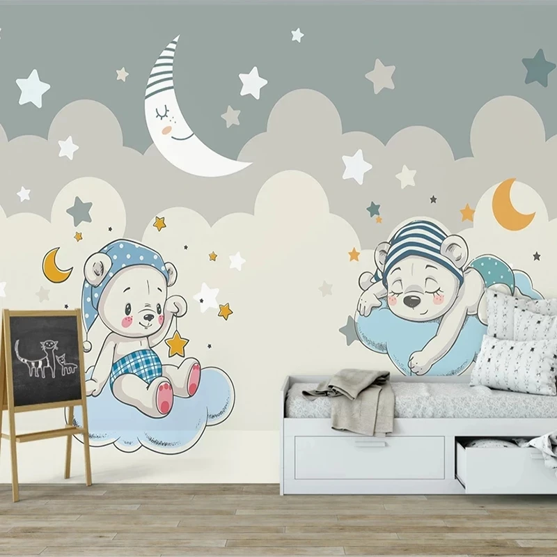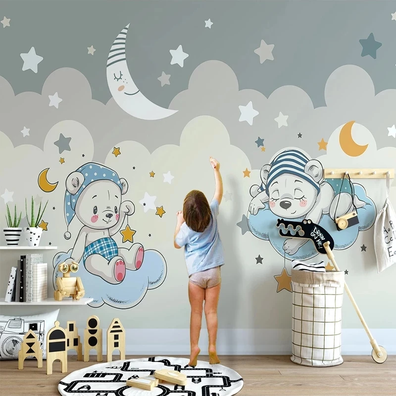 Фотообои на заказ с 3D изображением мультяшного медведя Луны звезд детской комнаты для мальчиков спальни фоновая роспись самоклеящиеся обои