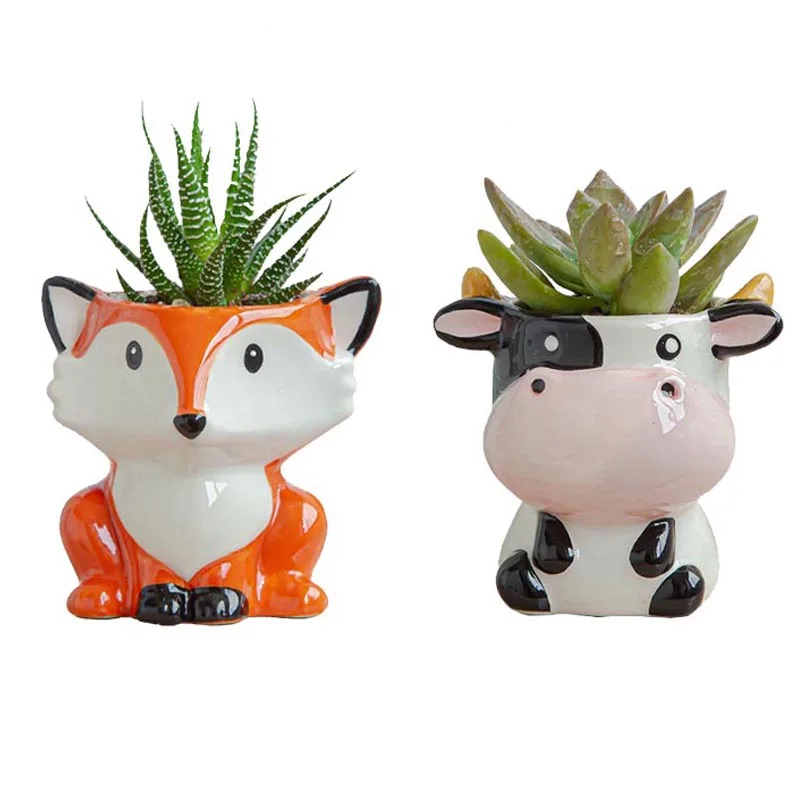 Керамический горшок с изображением животных, домашний декор, миниатюрный горшок бонсай, суккуленты, декоративные аксессуары