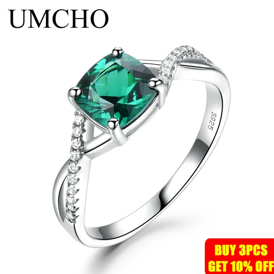 UMCHO зелёный Изумрудный камень, кольца для женщин, Стерлинговое Се...