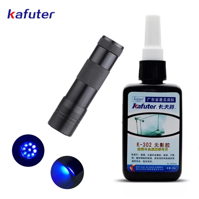 Сильный 50 мл клей УФ Kafuter УФ-клей K-302 + 51 светодиодный ультрафиолетовый фонарик УФ-клей с украшением в виде кристаллов Стекло и металлической сетки