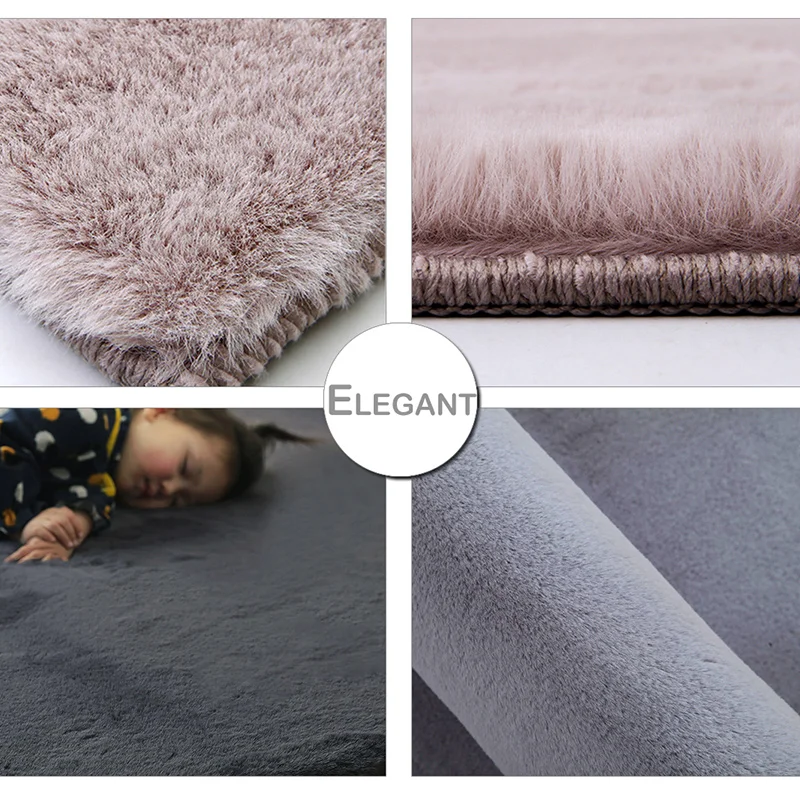 Этот ковер из искусственного меха кролика изготовлен из полиэфирного волокна и на ощупь почти такой же, как настоящий мех кролика. Он полезен и гуманен, удобен и не имеет запаха.