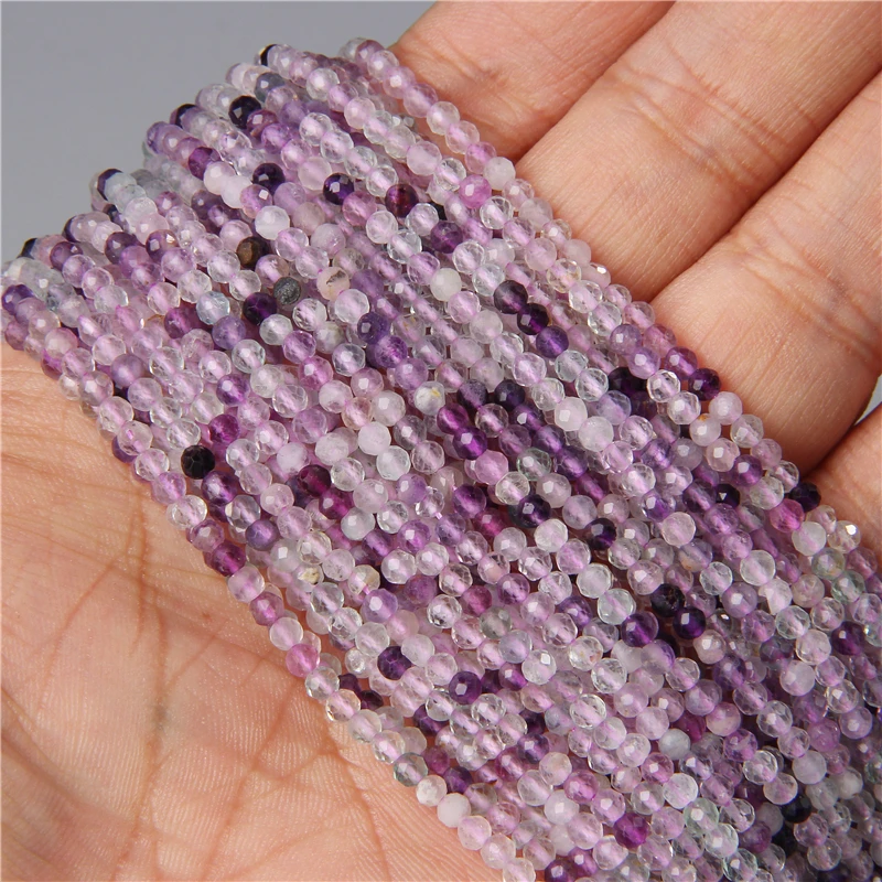 Маленькие бусины из натурального граненого камня, фиолетовая слюда, 234 мм, кварц, аметист, агат, флюоритовая, Хрустальная граненые бусины для изготовления ювелирных изделий