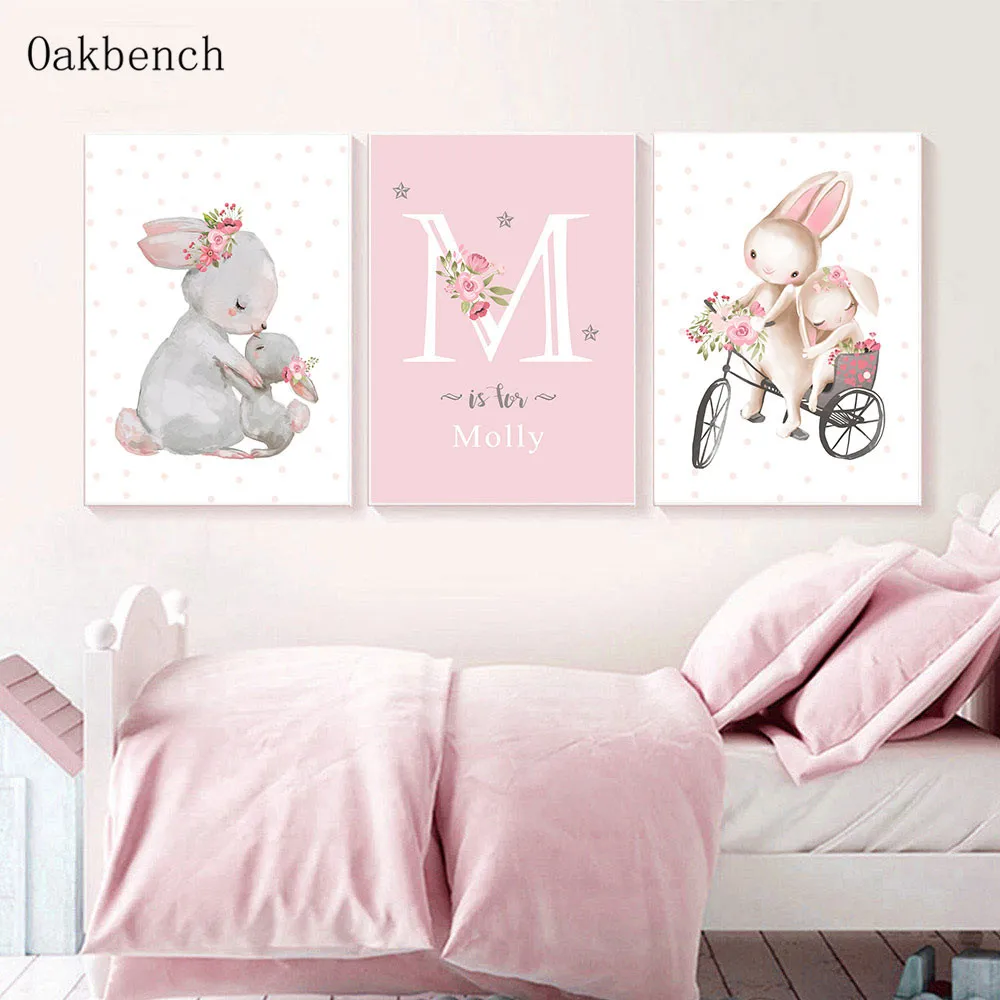 Пользовательское имя холст картины кролик плакат цветок Плакаты Nordic настенный художественный принт настенные картины для детской комнаты для украшения комнаты
