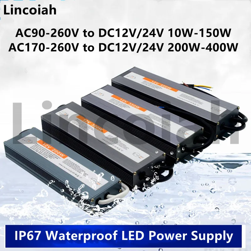 Водонепроницаемые трансформаторы для освещения, переменный ток 220 В в постоянный ток 12 в 24 В, светодиодный драйвер, адаптер питания 10 Вт 100 Вт 200 Вт 400 Вт, водонепроницаемый источник питания 12 В
