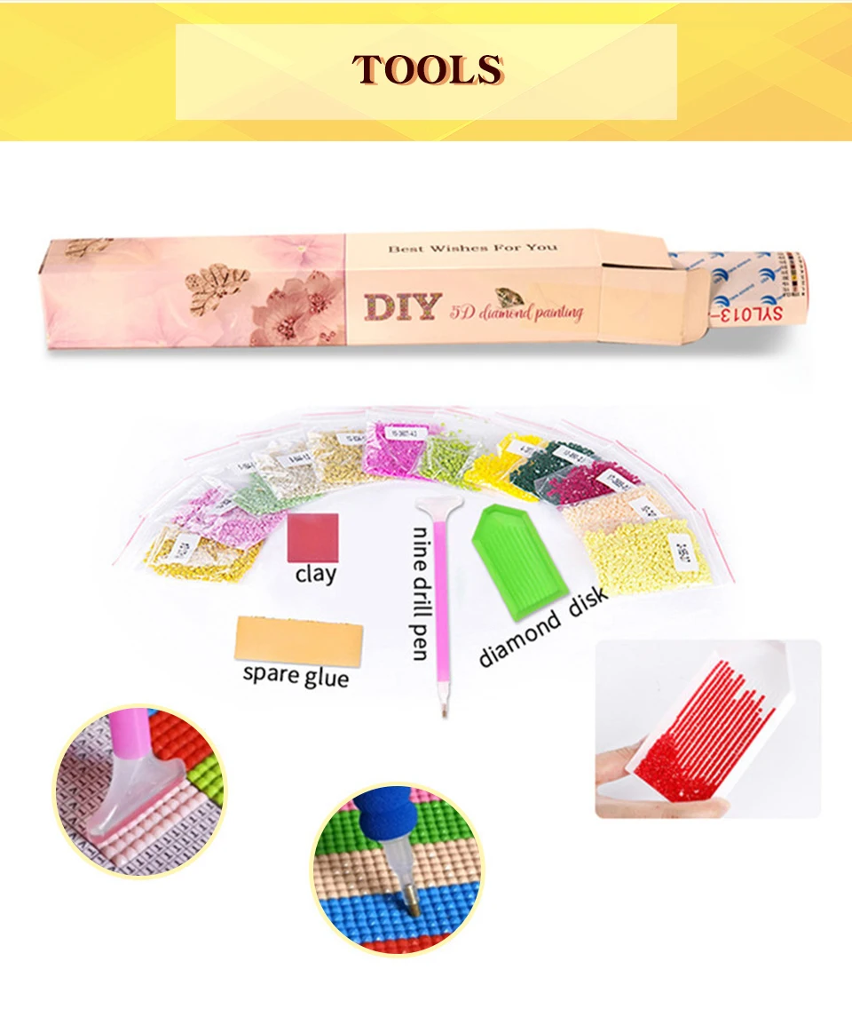 Посылка включает:Полностью сверлильный алмаз, напечатанная ткань, инструменты