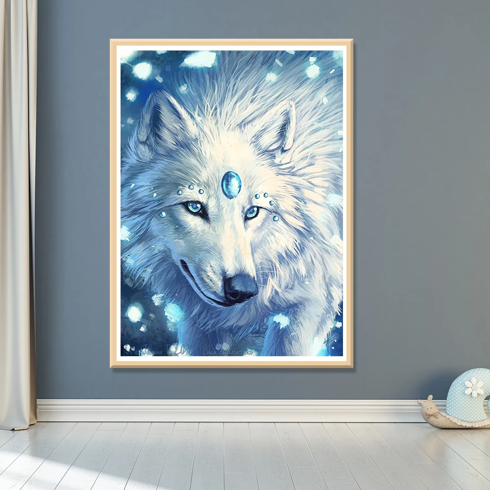 Алмазная мозаика полная компоновка:5D DIY Алмазная вышивка белый волк