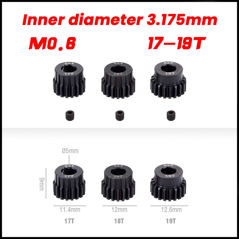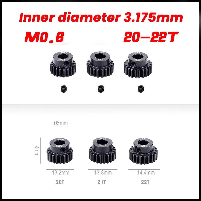 Простая установка и длительный срок службы Твердая анодированная поверхность шестерни Антикоррозийная обработка поверхности шестерни Подходит для 1/8 RC модели автомобиля 5 мм вал бесщеточный мотор щетки Каждая Шестерня оснащена винтовым станком, прозрачной упаковочной лентой Посылка: 1 комплект * мотор-редуктор Параметры номера T 17T 17T ¢ 5 * ¢ 11,4*9 мм 18T 18T ¢ 5*12 12*9 мм 19T 19T ¢ 5*12,6 12,6*9 мм 20T 20T ¢ 5*13,2 13,2*9 мм 21T 21T ¢ 5 * ¢ 13,8*9 мм 22T 22T ¢ 5*14,4 14,4*9 мм 23T 23T ¢ 5*15 15*9 мм 24T 24T ¢ 5*15,6 15,6*9 мм 25T 25T ¢ 5 * ¢ 16,2*9 мм 26T 26T ¢ 5 * ¢ 16,8*9 мм 27T 27T ¢ 5 * ¢ 17,4*9 мм 28T 28T ¢ 5*18 18*9 мм