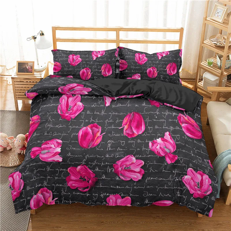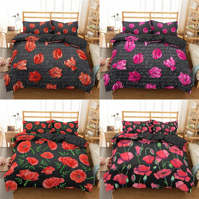 Комплект постельного белья с рисунком мака, пододеяльник, наволочка, очень большая односпальная кровать, высококачественное постельное белье
