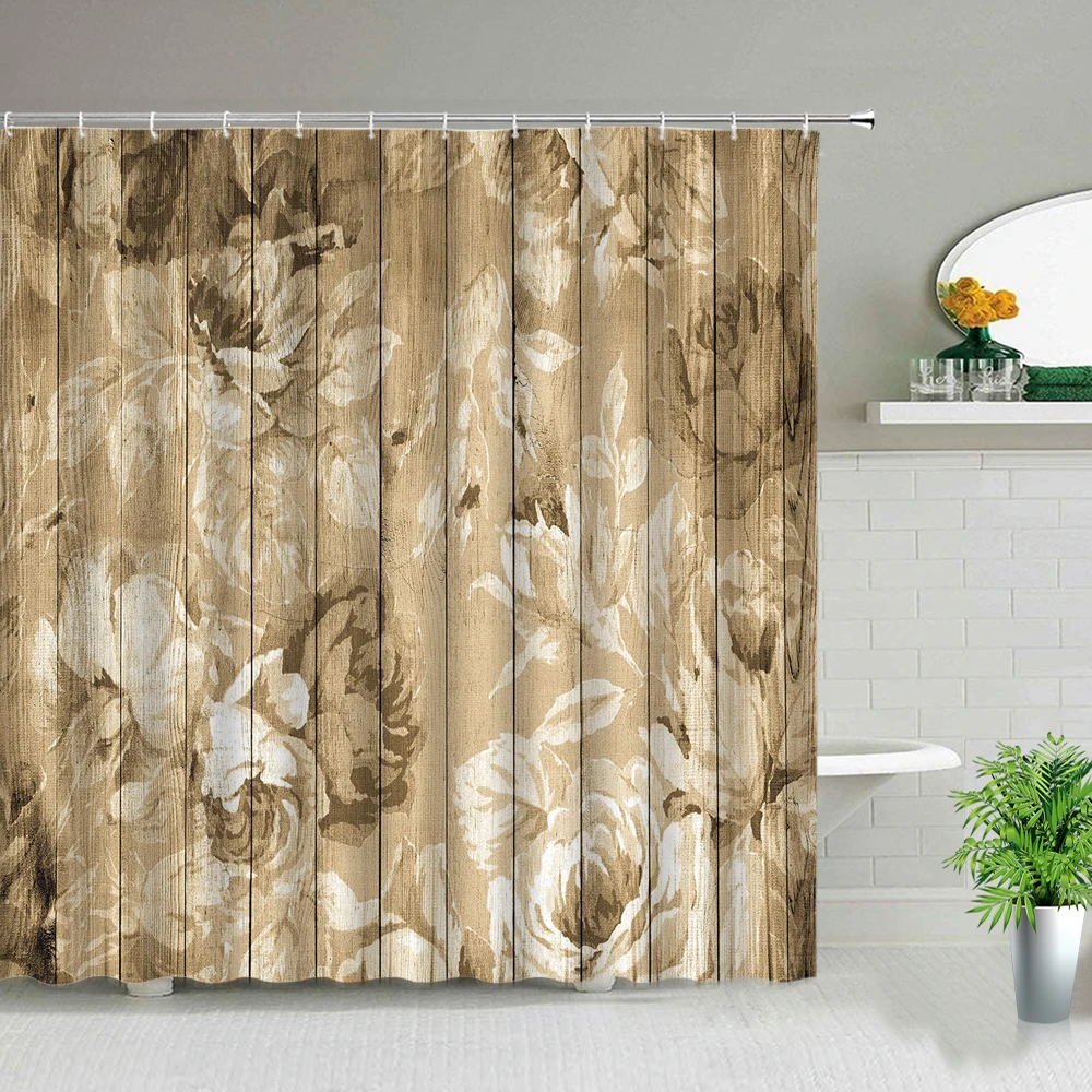 Штора для душа в китайском стиле, зеленая бамбуковая занавеска с рисунком под дерево и морскую звезду, водонепроницаемое сито для ванной комнаты из ткани с крючками