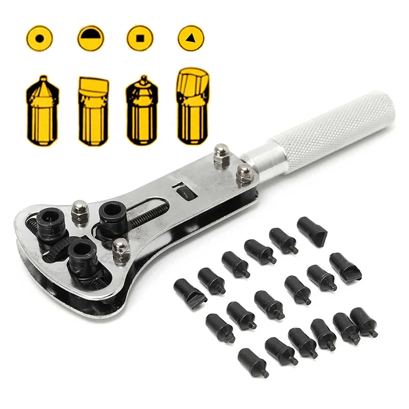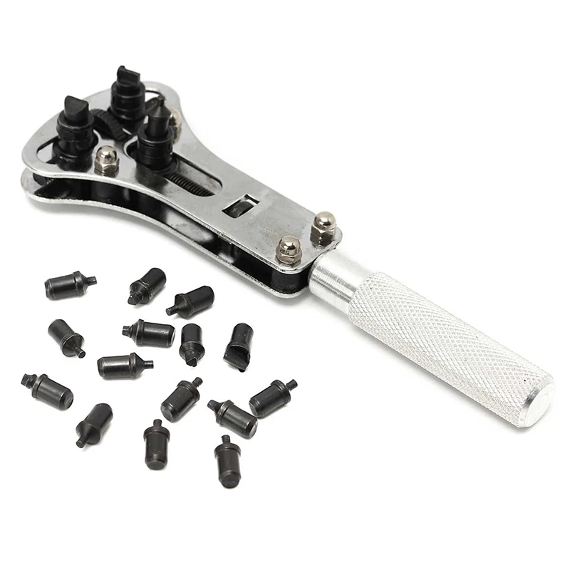 Этот набор открывалок оснащен 6 комплектами стальных зубов и набором из трех. Его можно заменить по желанию, и он может открыть большинство часов с задней крышкой обычного винта.