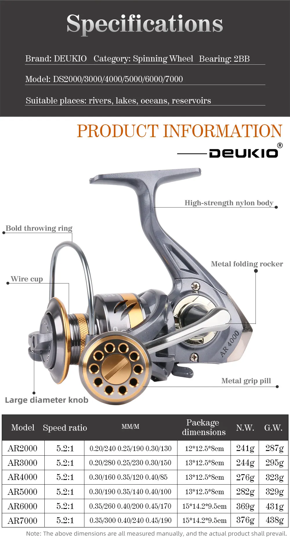 DEUKIO металлическая спиннинговая Рыболовная катушка 2BB 5,2: 1, катушка из алюминиевого сплава, AR2000-7000, серия, рыболовные снасти для морской рыбалки