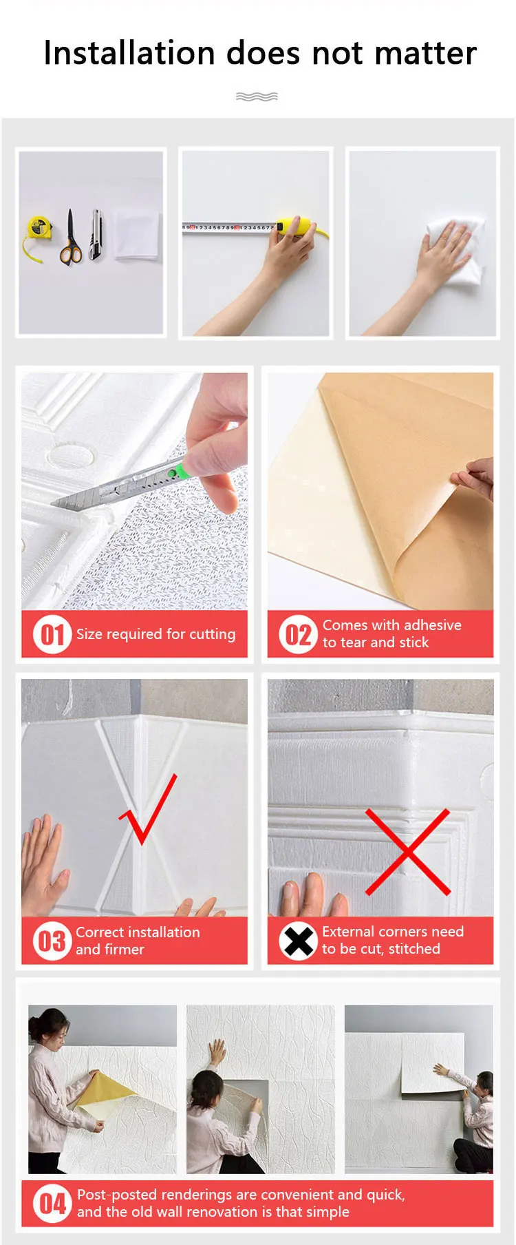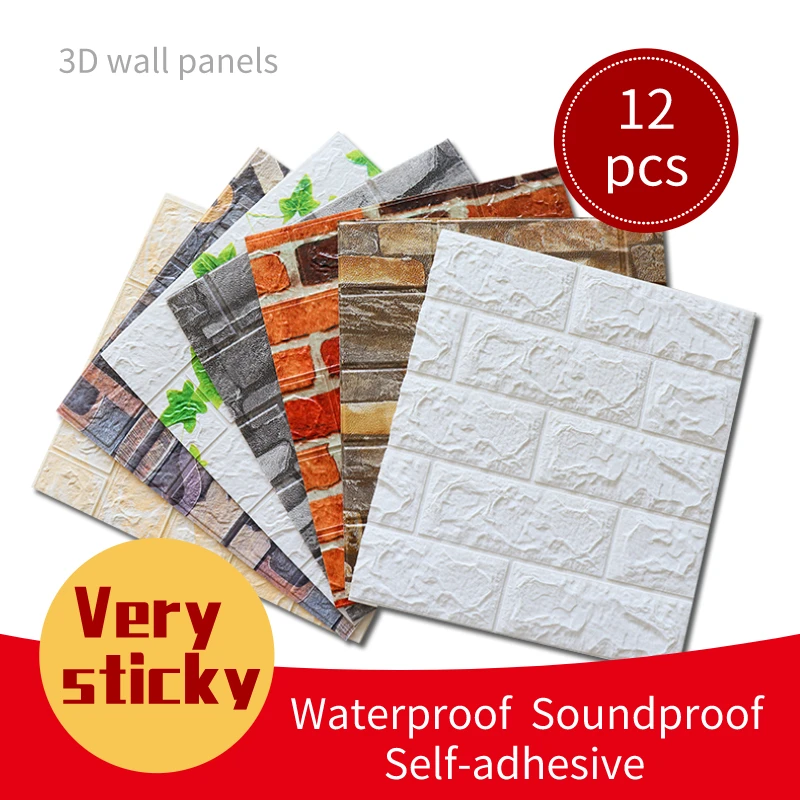 12PCS 3D Wall Panel Home Decoration Self-Adhesive Panels 3D Wallpaper Waterproof 3D Wall Stickers Vinyl Decorative Wall