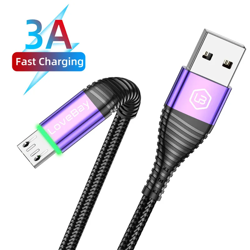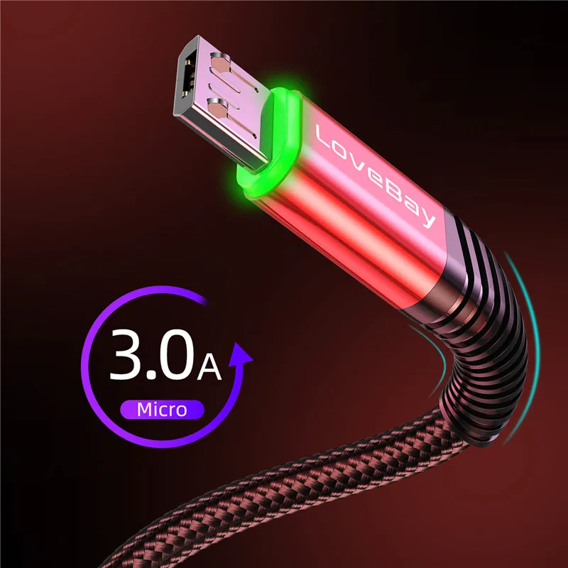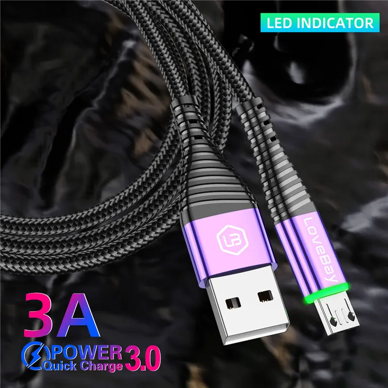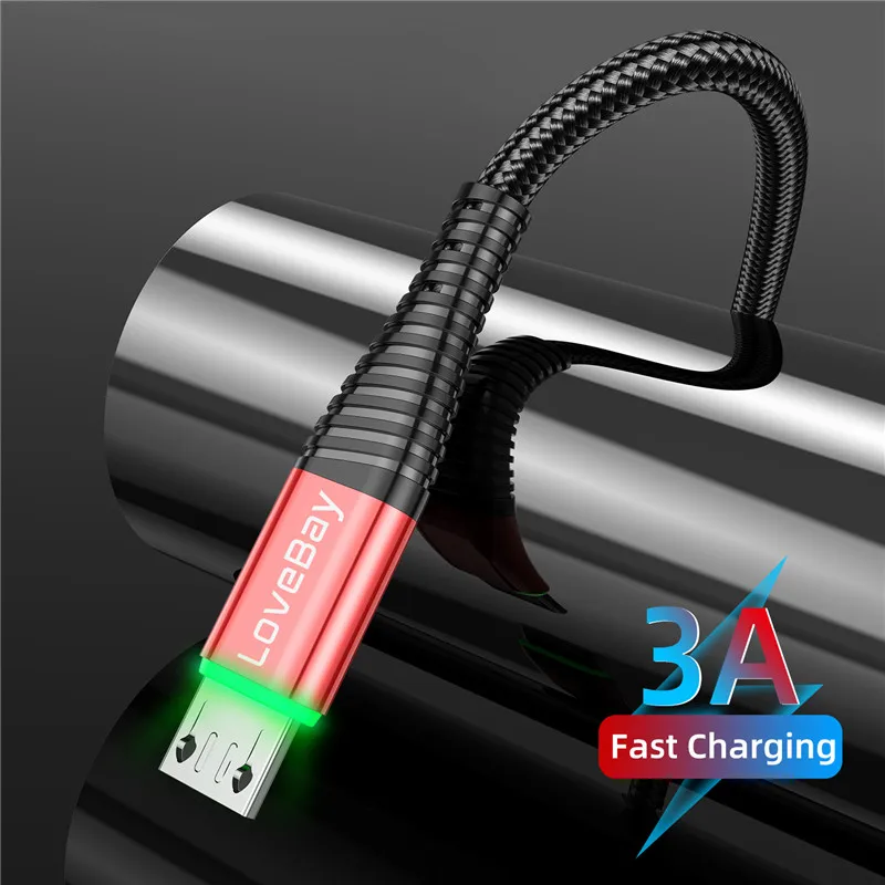 Lovebay чехол 3A LED Micro USB кабель Micro USB для быстрой зарядки зарядное устройство кабель для передачи данных-провод для Samsung Huawei Xiaomi Android мобильный телефон