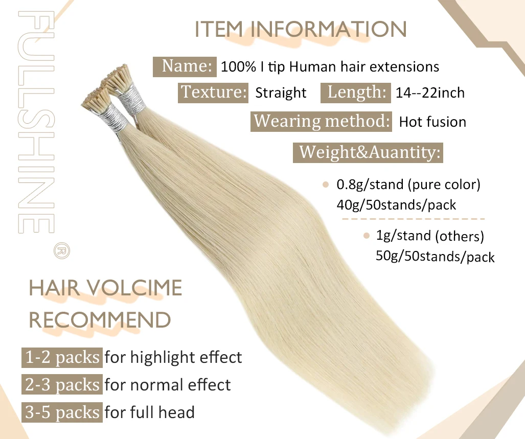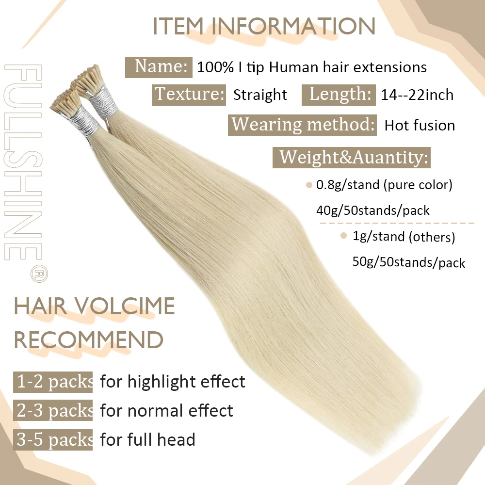 Накладные человеческие волосы Full Shine I Tip, 50 грамм, человеческие волосы с кератином Remy, предварительно скрепленные мягкие прямые волосы для женщин
