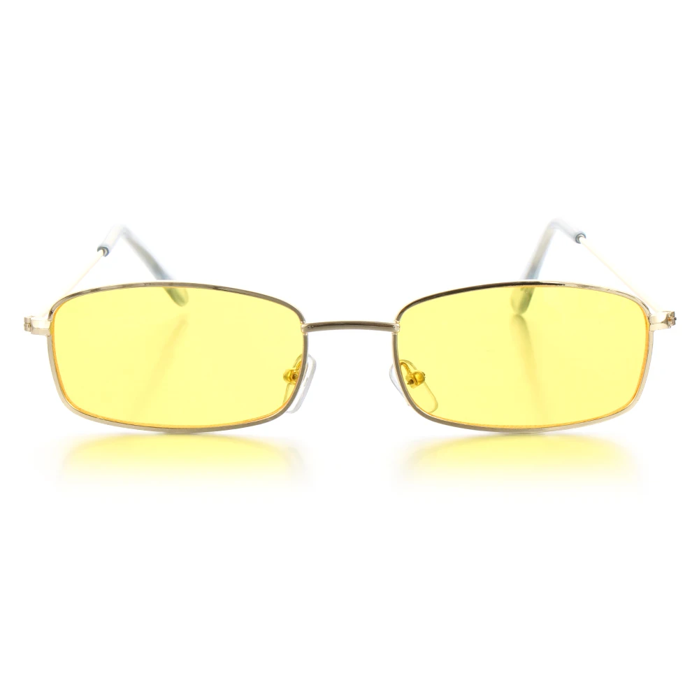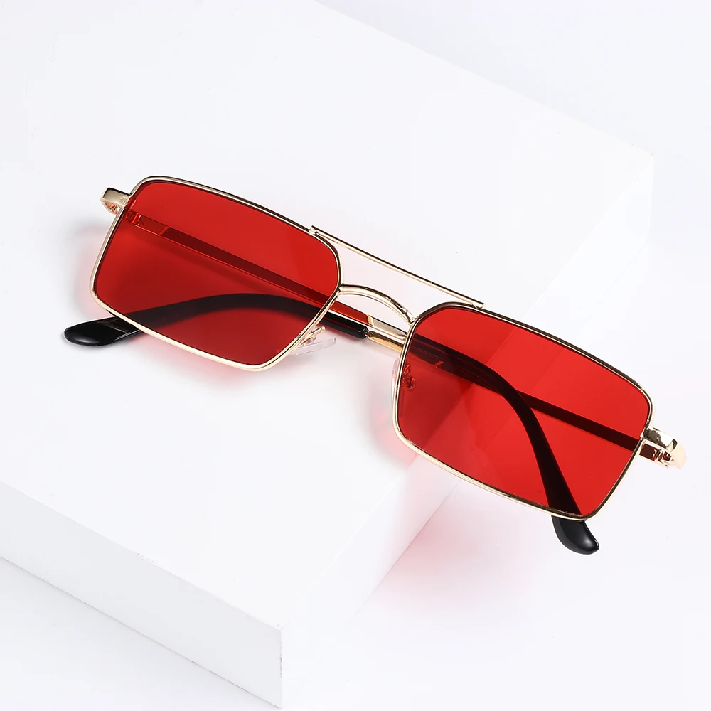 Солнцезащитные очки мужские и женские, прямоугольные, в металлической оправе, в стиле ретро