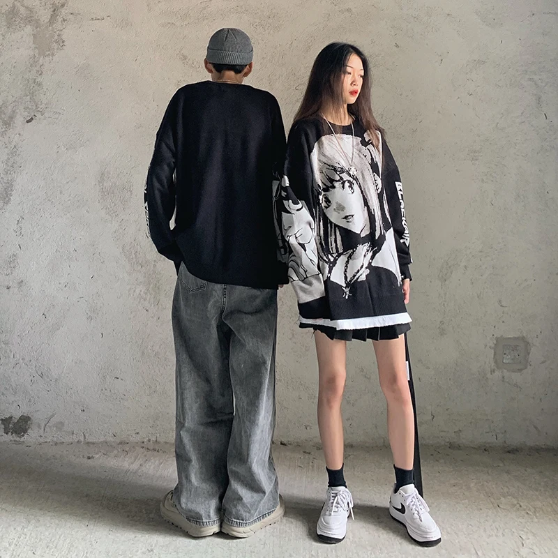 Мужская Уличная одежда в стиле хип-хоп, толстовки в стиле Харадзюку, винтажный свитер в японском стиле ретро с аниме и принтом для девушек, осень 2022, полиэстеровый пуловер