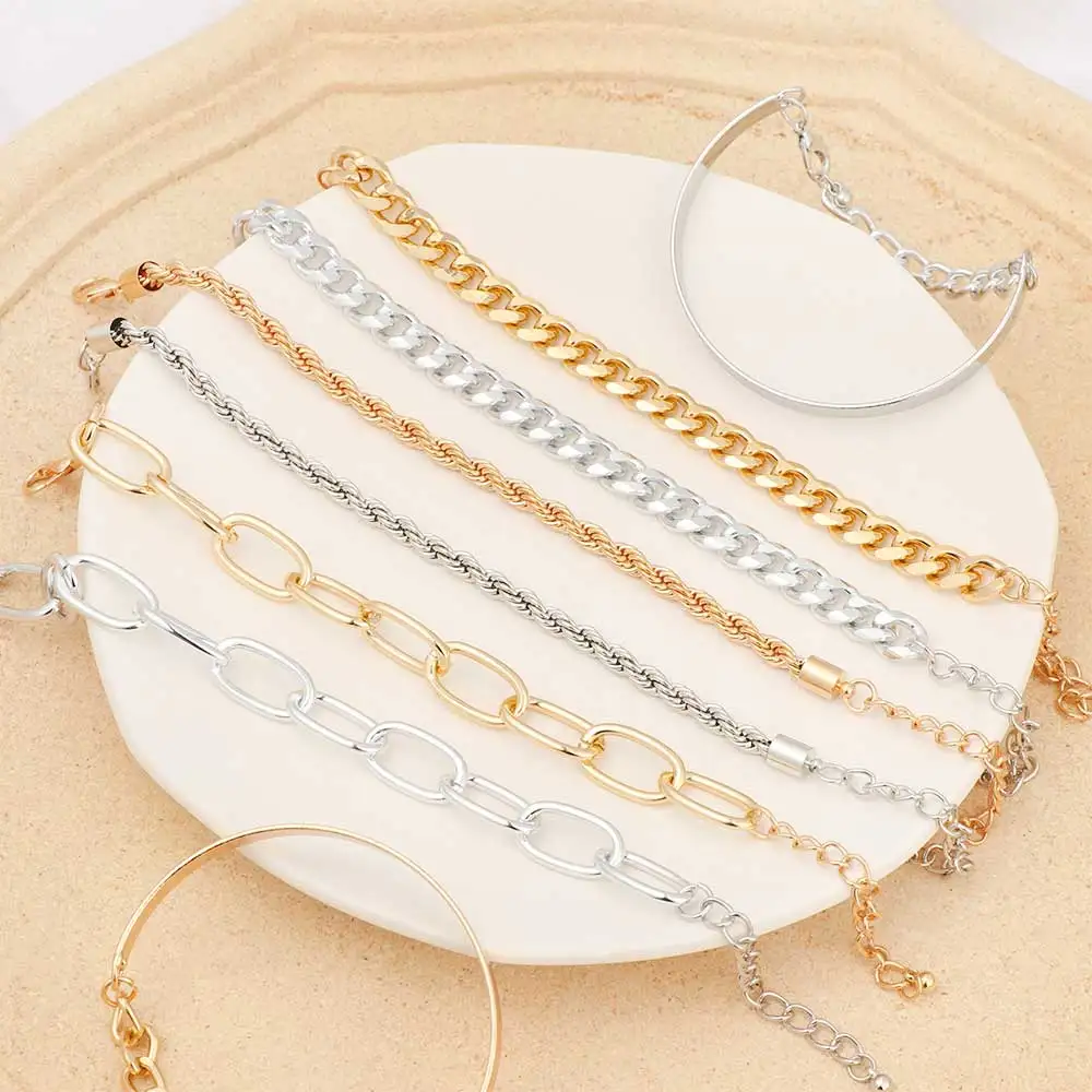 Комплект женских браслетов из кубинской цепи в стиле панк, 4 шт.