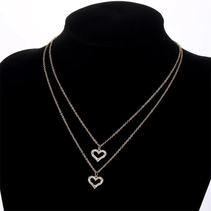 EN модное свадебное ожерелье с подвеской в виде сердца для женщин многослойное золотое ожерелье с кристаллами в форме сердца подарки на день Святого Валентина ювелирные изделия