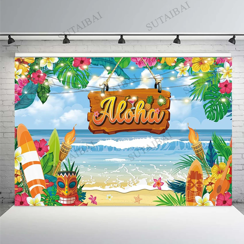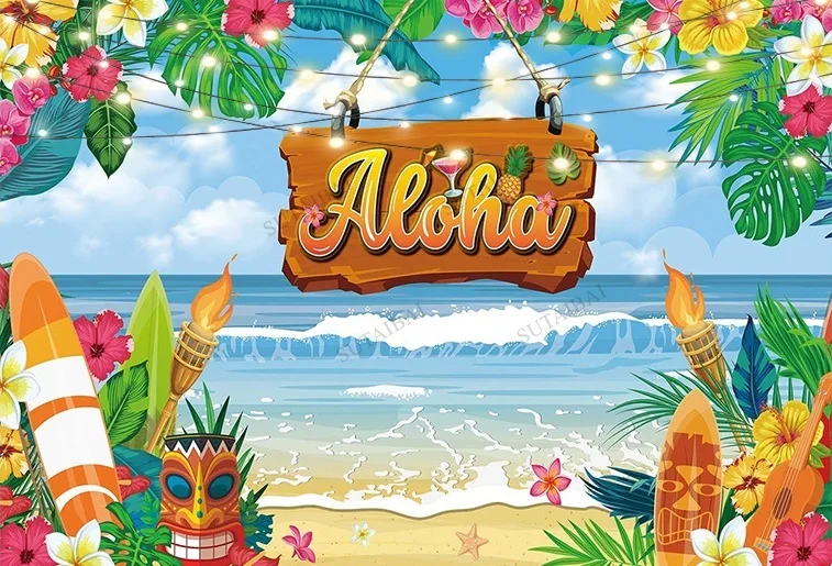 Летние тропические цветы украшения для вечеринки Гавайская пляжная Пальма день рождения Алоха фон для фотосъемки Фотостудия