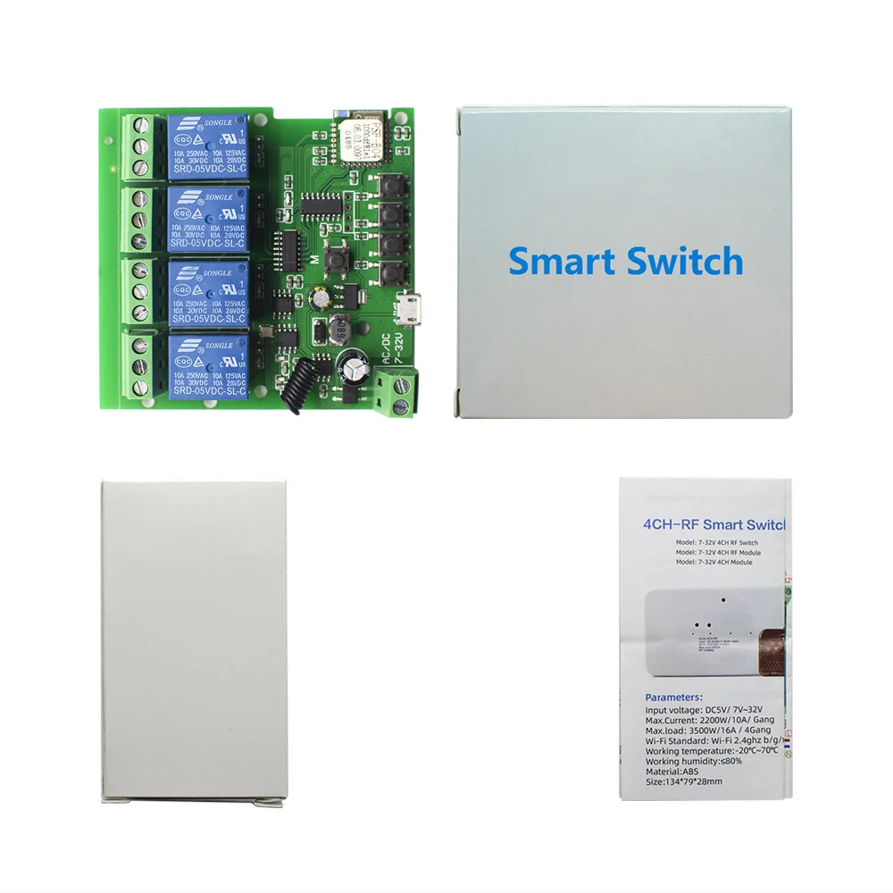 Релейный модуль 7 В, 32 В, 85 в, 220 В, 250 В, 4-сторонний умный пульт дистанционного управления eWeLink, wi-fi переключатель, ввод, самоблокирующийся Блокировка, блокировка для Google Home