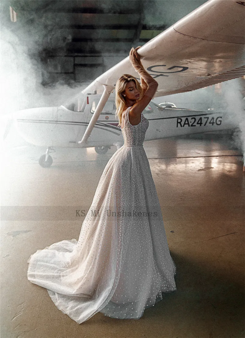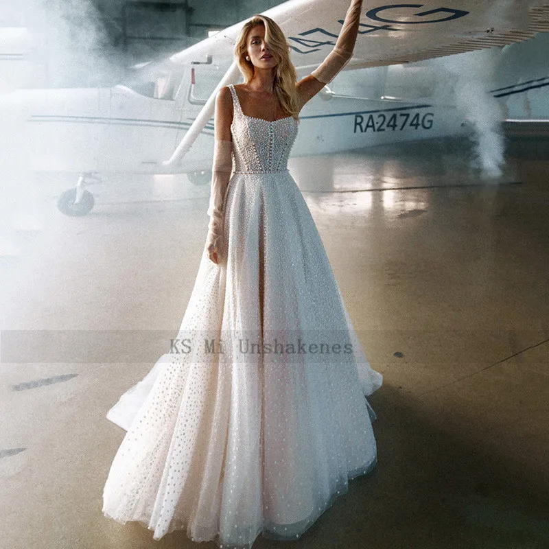 Женское свадебное платье с жемчугом, сияющее винтажное платье невесты в стиле бохо, индивидуальный пошив, свадебные наряды, 2021