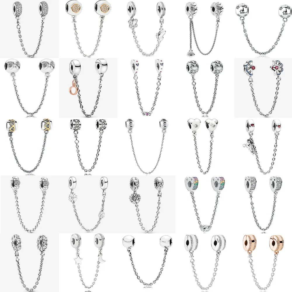 2021 серебро 925 пробы, блестящий прозрачный цветок, безопасная цепочка, Шарм-бусина, подходит для браслета Пандоры, подвеска, безопасная цепочка, ювелирные изделия своими руками