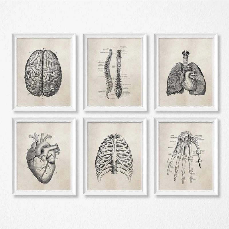 Европейская Анатомия человека, плакаты и принты мозга легких и сердца, картина для больницы, настенная Картина на холсте, искусство для украшения гостиной