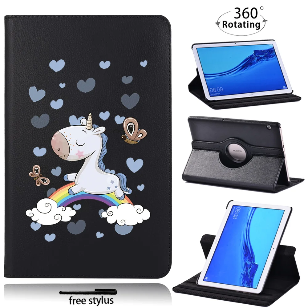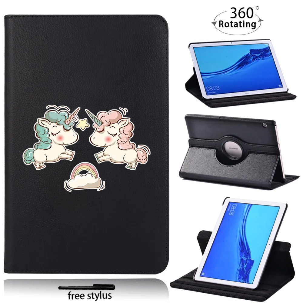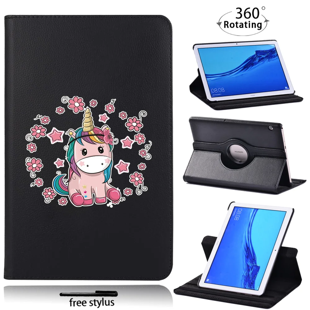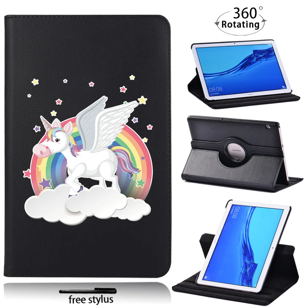 Чехол для планшета Huawei MediaPad T5 10 10,1 дюймаT3 10 9,6 дюйма, вращающийся на 360 градусов милый единорог, защитный чехол + Бесплатный стилус