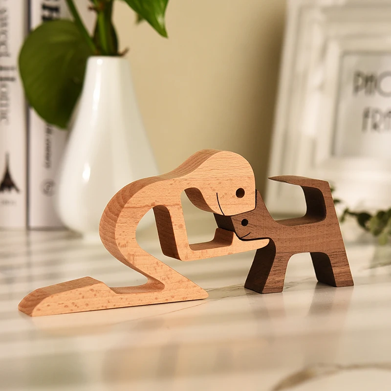 Деревянная фигурка для щенков, украшение для стола, украшение для дома, офиса, семейное украшение, деревянный подарок для любимого в коробке
