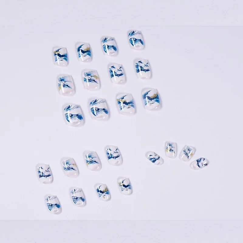 GAM-BELLE градиентный мраморный золотой фольгой накладные ногти квадратной формы искусственный пресс на кончики для ногтей элегантный декоративный Маникюр Инструмент