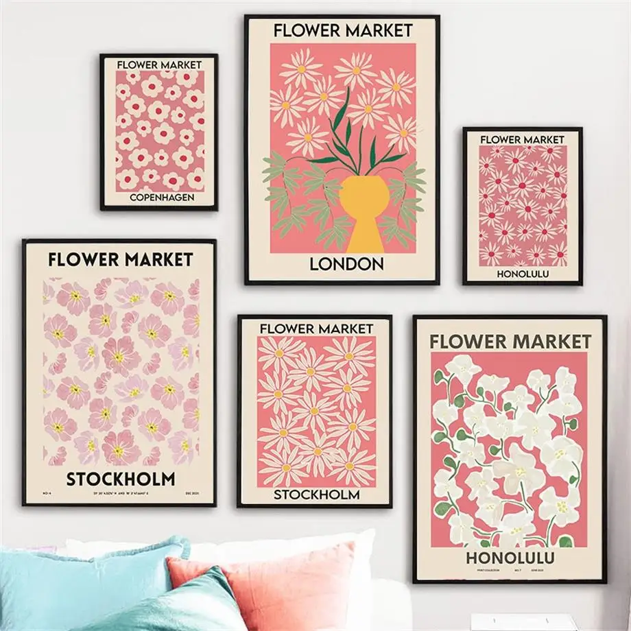 Настенные постеры с розовыми цветами, цветами вишни, розой, пионами...