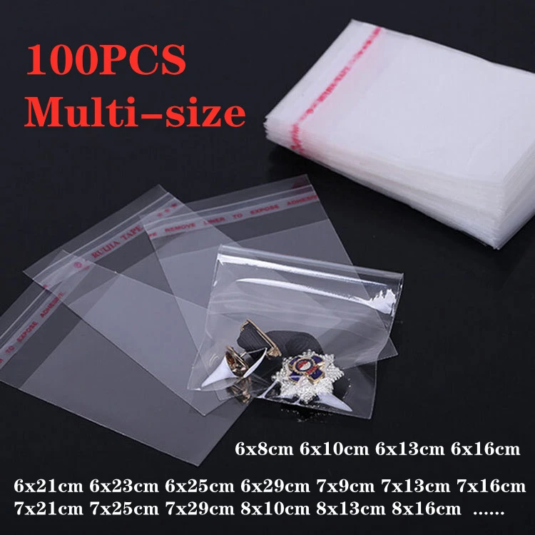 100 шт.многоразмерный прозрачный самоклеящийся упаковочный пластиковый целлофановый пакет из ОПП, Подарочный пакет для конфет и упаковочный пакет для ювелирных изделий