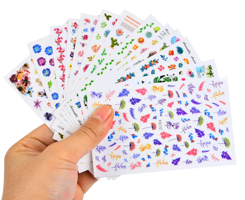 1 лист 3D цветные наклейки на ногти цветок и зеленый лист узор пере...