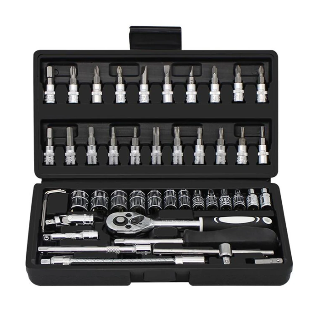 Набор ручных инструментов для ремонта автомобиля, 46 предметов, коробка для механических инструментов для дома, торцевой ключ 14 дюйма, Набор отверток с трещоткой