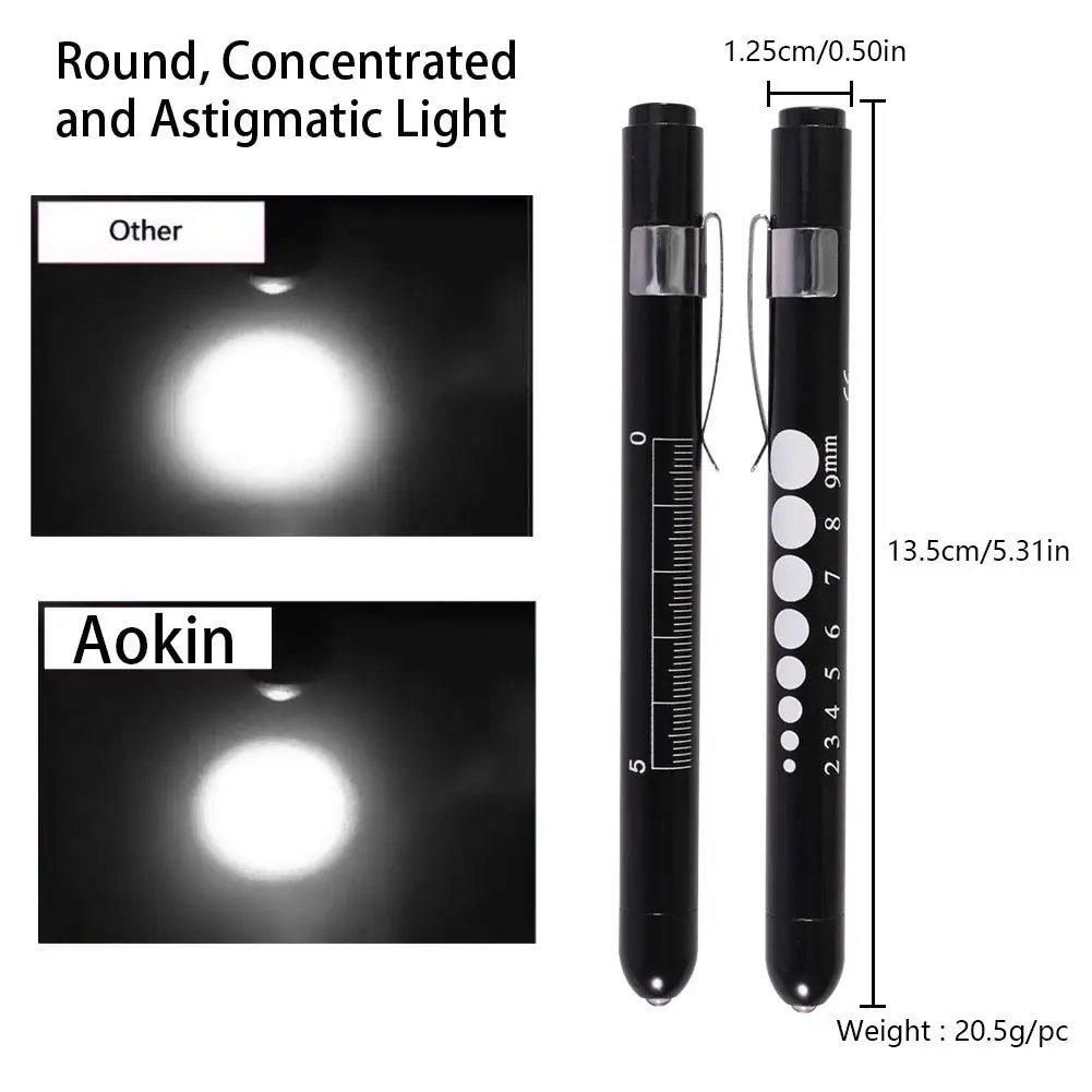 Aokin медицинская ручка светильник s для медсестер, врачей, многоразовые светодиодный медицинская ручка светильник вспышки светильник с датчиком зрачка и линейкой, белый светильник,