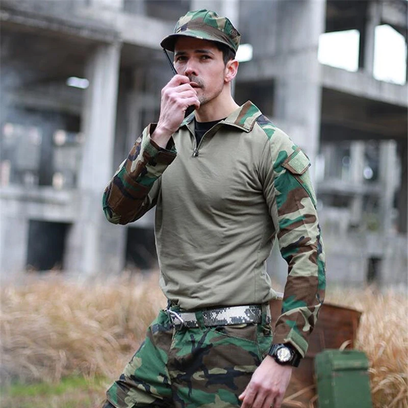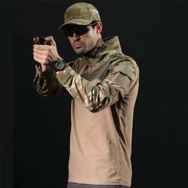 Тактическая футболка с длинным рукавом солдаты Военная Боевая футболка камуфляжная рубашка Пейнтбол Военная охота тактика Униформа Топы