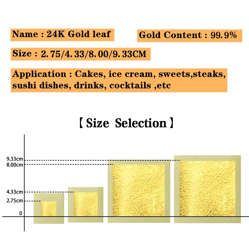 24K Gold Leaf листочек из съедобного золота 4,33 см x 4,33 см, оптовая закупка на заказ без соглашений, пожалуйста, не принимайте заказ