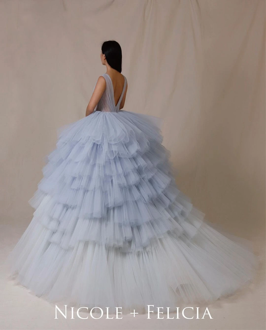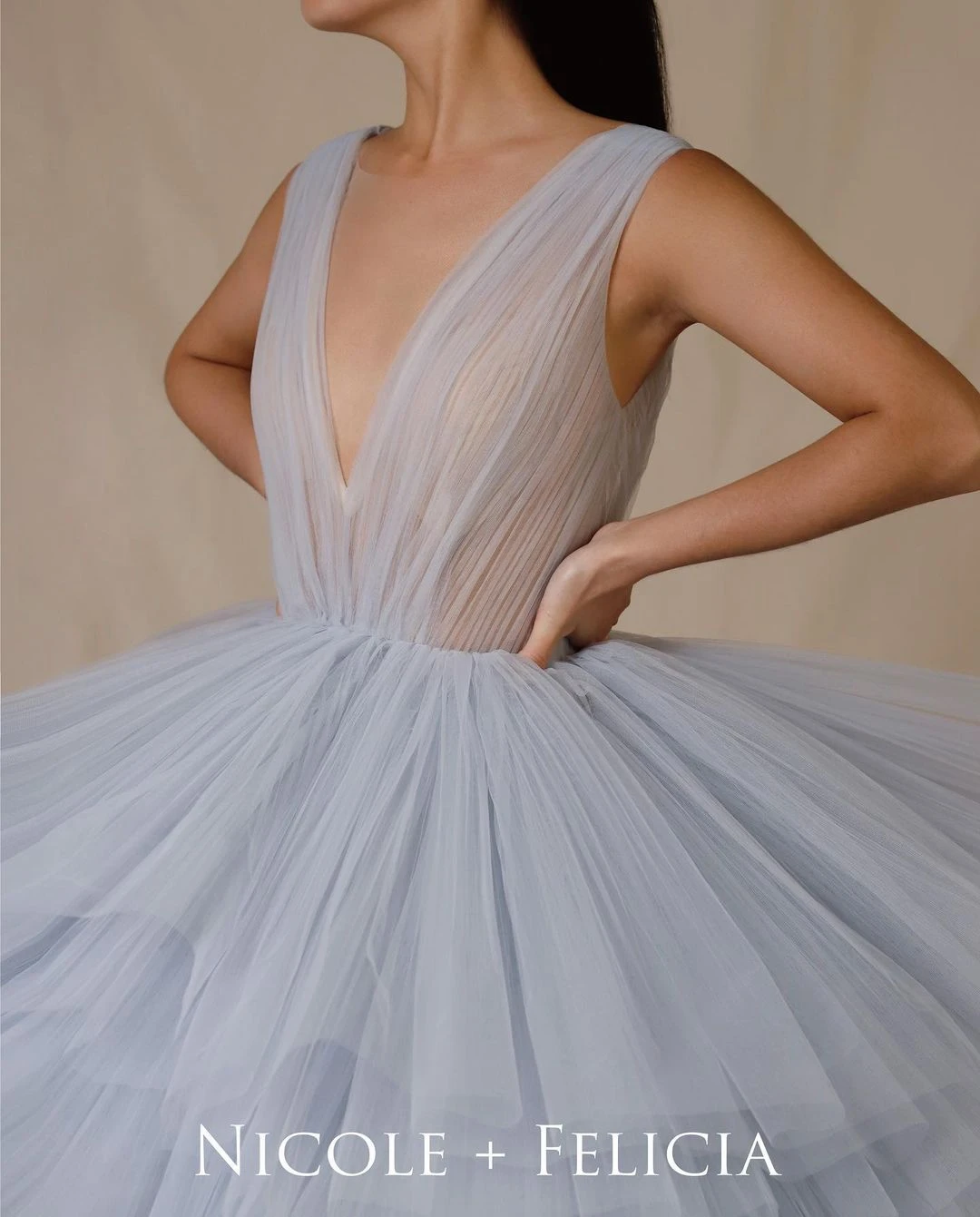 Изысканные винтажные платья для выпускного вечера с двойным глубоким V-образным вырезом без рукавов Многослойные пышные фатиновые вечерние платья длиной до пола на заказ