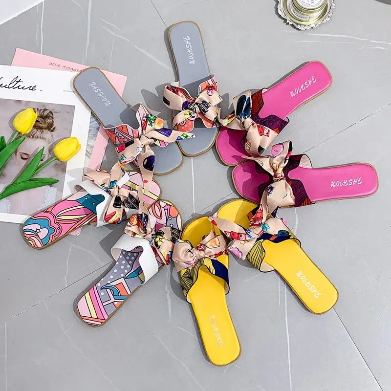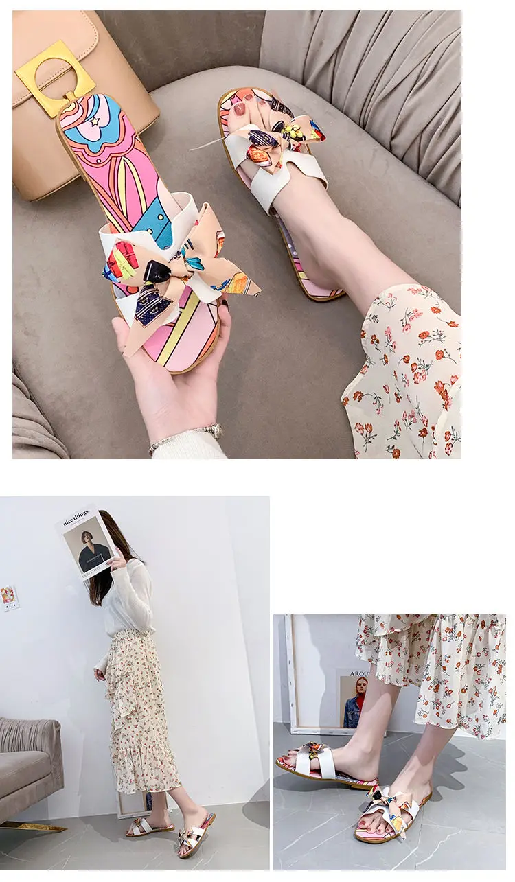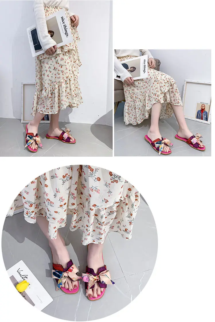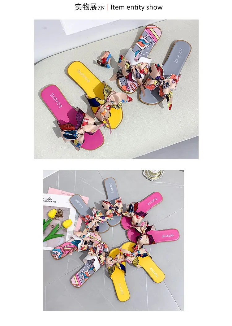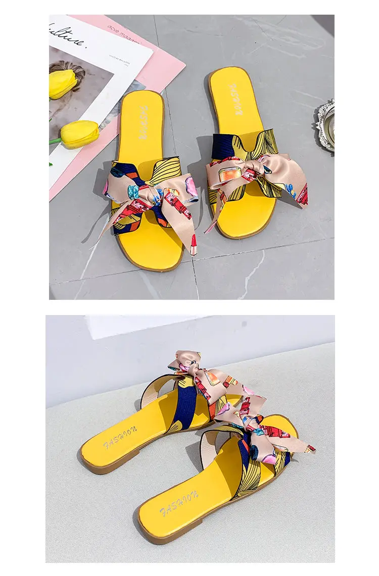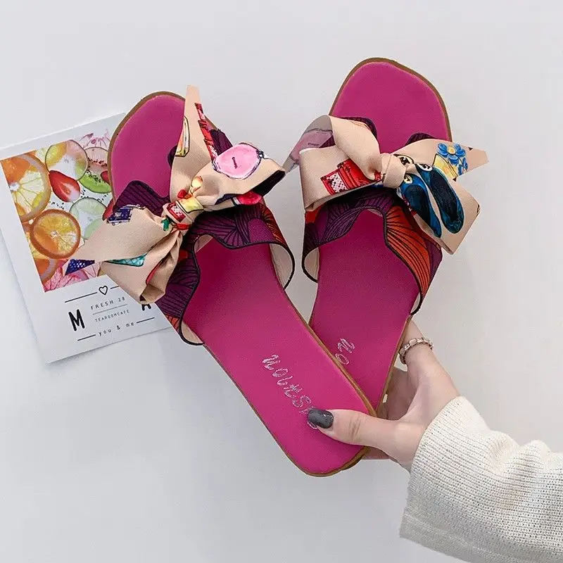 Сандалии женские с бантом, шлепанцы для дома и улицы, пляжная обувь...
